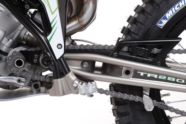 A váltó hatfokozatú, a gyújtást a japán Kokusan szállítja. A váz króm-molibdén csövekből készült, a negyvenes Marzocchi villa pedig alu. A hátsó kerék tövében Öhlins rugót találunk, tartályát mókásan körbetekergi a kipufogó.