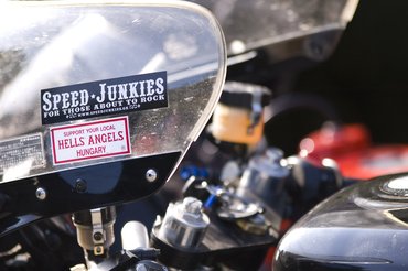 Tesztmotorunk az első széria utolsó évjáratából származik. Hirdetésben találtuk, az órája 35 ezer kilométer futásteljesítményt, tulajdonosa balesetmentes múltat ígért. Az amerikai Kerker kipufogó korhű, de úgy vagyok vele, mint egy plasztikai beavatkozással – a végeredmény nem rossz, de a műtét mögött mindig lappang valami kellemetlen titok. A matricázás sugaras gyűrődése, meg a hegesztett alumínium fékpedál megcáfolhatatlan; mindkettő bizonyítéka egy korábbi balesetnek.