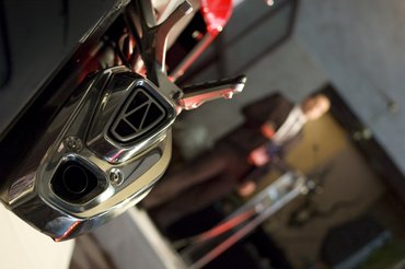Természetesen a fék itt is C-ABS, vagyis kétkörös hidraulikus blokkolásgátló rendszer. A fékkar csak elöl hat, míg a pedál elöl-hátul – az ideális működés érdekében a radiális, hatdugattyús első féknyereg kétrészes fékbetétet kapott.
