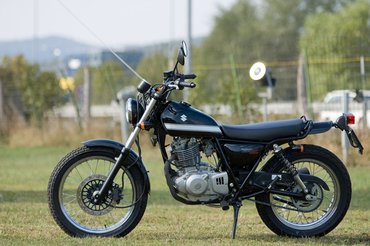 A Suzuki szerényebb: fekete váz, fekete idomok, a központi rugóstag helyett klasszikus pár: a dirt track ízbe keveredik a hetvenes évek scrambler hangulata. A sok műanyag helyett itt minden fém: a részletek kidolgozása gyönyörű, a DR250-ből származó blokk formája passzol a hagyományos vázhoz.