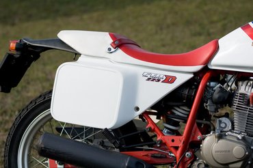 Az ülés tapintása modernebb: a perforált piros ülőlap a nyolcvanas éveket idézi. Első pillantásra az utas alatti fehér hátsó rész műanyagnak tűnik, pedig nem; a dirt track-legenda Harley XR750-en megismert faridomot faragták ki szivacsból.