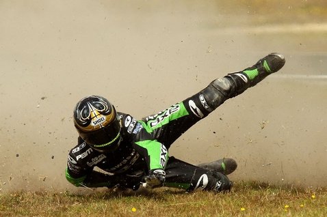 Az ötödik helyről hempergett a kavicságyba James Toseland, és nem azért maradt földön, mert összetörte magát: a MotoGP-s szenvedés után nyíltan vállalta, hogy visszalépés neki az SBK – ilyen előzmények után rögtön az első futamon elesni pocsék dolog. Pár perccel később a Kawasakihoz szerződött Vermeulen fékezett túl nagyot, és csúsztatta el a motor elejét: visszaállásra nem volt esély, mivel a ZX10R blokkja kidurrant. Hasonlóan esett el Crutchlow, a tavalyi Supersport bajnok. A 2009-es világverő Yamaha R1-ből mindkettő mellékvágányon – ez a mérleg a félidőben.
