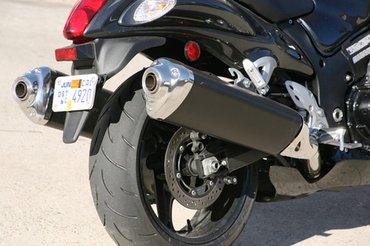 A dob egy rémálom: semmiről nem szól, csak a kényszerről, amibe a tervezőket belesodorta a nagy motorteljesítmény és az Euro3-as szabályozás. Két katalizátor van benne, azonnal a bevezető csőnél, kétszer fordul benne 180 fokot a gáz, középen pedig szembevezetik a két henger gázáramát, majd a jobb hátulra kivezetik a dobból. A szembe áramoltatással energiát, így zajt csökkentenek, de vajon jót tesz ez az öblítésnek, a töltéscserének?