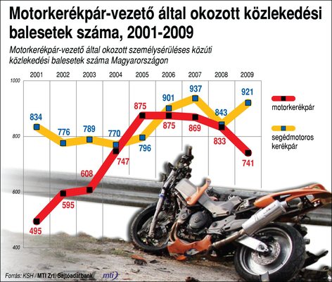 Örömteli változás, hogy nem szakadt meg a nagymotorokkal elszenvedett balesetek számának csökkenése. 2005 óta egyre kedvezőbb a tendencia, a tavalyelőtti 833-mal szemben tavaly mindössze 741 baleset történt – a szakértők ezt a folyamatos balesetmegelőző kampányoknak és a terjedőben levő vezetéstechnikai tréningeknek tudják be.