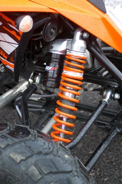 Úgy általában: motoros aggyal bármilyen quad igényel némi megszokást. Ez nem egy négyzetre emelt kétkerekű – másként viselkedik és másként is kell kezelni. Nagyjából annyi a különbség, mint a síelés meg a snowboard között, úgyhogy nyugodtan felejtsük el, amit eddig tanultunk, akasszuk csuklónkra a vészleállítót, aztán start.