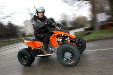 A 2008-as 450-es és 525-ös terepmodelleket már próbáltuk. Rácz Tamás a Vértes mezőgazdasági útjain játszott, én az ausztriai Eisenerz bányájában. Erősek, hihetetlenül precízen irányíthatóak és erőcsúsztatásban verhetetlenek. Port köptünk, izzadtunk és sajgó alkarral szálltunk le, de talán egy pillanatra sem jutott egyikünk eszébe, hogy hű, de jó lenne az izomquadot aszfalton terelgetni. Most meg hirtelen muszáj lett.
