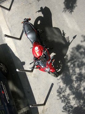 Vespát szinte naponta használok már vagy tíz éve tavasztól őszig, de nagymotoron, egyedül, tavaly nyáron ültem utoljára, és akkor is csak egyszer-kétszer. Jó lett volna gyakorolni kicsit. A nagymotorozást persze nem felejtettem el, de a motor súlyától azért kicsit tartottam. Régebbi, álló helyzetből való eldőlések emléke kísértett. Egy letört kuplung- és fékkarvég. Ezeket a mostani motoros dzsekim zsebeiben őrzöm, kabalából. Továbbra sem hiszem, hogy egy ilyen motor nekem való, persze akadnak csajok, akik nagymotorral járnak nap mint nap, de nézzék csak, milyen kevesen vannak ők, és milyen sokan a többiek.