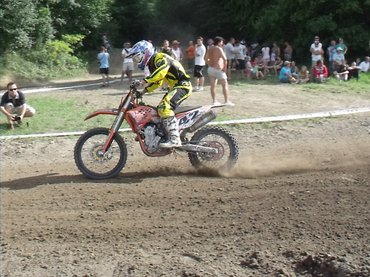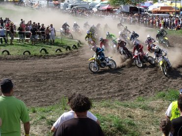Az első rajt okozott egy kis kavarodást. A rajtegyenes végi visszafordítóhoz nagy lendülettel érkező Czúni (4) ráfutott egy poros, ámde kemény részre, így a fékávot nem tudta elég rövidre venni, a szűk fordulója nem sikerült, sőt egy külső íven forduló versenyzőnek ütközött. Többen elestek, fékezni kényszerültek, Borka János (266) és Szvoboda Bence (42) tudott csak gyorsan elfordulni, így a verseny a továbbiakban kettejük párharcáról szólt, mögöttük alaposan összekuszálódott és lemaradt a mezőny. Az MX2-ben Hugyecz Eriknek (141) nem sikerült elkerülnie a bukást, de nem adta fel a küzdelmet: a legutolsó helyről verekedte fel magát a negyedik pozícióig. Németh Kornél (108) a mezőny közepéről pár kör alatt a harmadik helyre ugrott, de addig Borka és Szvoboda eléggé elléptek a mezőnytől. Amikor Szvobodát utolérte, több körön keresztül mögötte motorozott, így többször is az arcába kapta a pálya egyes részein jelenlévő sarat. Ennek következtében elfogyott a szemüveg letépője és a sár ellepte a plexit, Kornél pedig nem kockáztatott, inkább kiállt. Talán a szerződése miatt döntött így, vagy a kedve ment el a további versenyzéstől, mindenesetre a nézőknek csalódást okozott.