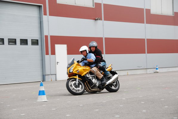 Assur: Nagy tempóval itt sem száguldoztunk, de a motor irányításának megtanítására nagy hangsúlyt fektettek. A nagy CBF több mint két mázsa, de az ezen bemutatott trükkök ugyanolyan hasznosnak bizonyultak a robogón, mint bármilyen nagymotoron. A megfelelő testtartással, gázadási, fékezési és kanyartechnikával egy tízéves gyerek is megcsinálta volna, amit mi a két nap alatt, és még el sem fárad bele. Talán ez volt a tréning legnagyobb tanulsága.