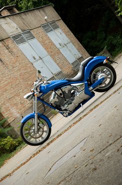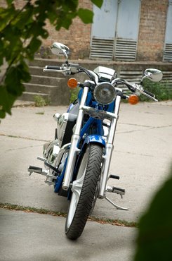 Itt van ez a Honda például. Nem abba a vonalba tartozik, mint az Intruder, a Midnight Star, vagy éppenséggel a Shadow, ó dehogy. Azok szabvány japán lifestyle-gépek, customként árulják őket, valójában óvatos Harley-imitációk. A VT1300 CX viszont pörölyként csapja mellbe látványával az embert – ez nem egy nyamvadt, reszketeg H-D-wannabe, hanem egy igazi, épített, motherfucker son of a bitch krúzer. Férfiszerszám, Leatherman, Victorinox, minden egyéb feláll, ha látja.
