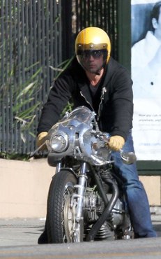 Brad Pitt imádja a motorokat, garázsa tömve van régi és új gépekkel. Az ízlésére nem lehet panasz, leginkább az épített motorokat kedveli. Tavaly kedvenc merevvázas bobbere mellé beszerzett egy Ducati 750-et is: a csodás café racert a japán zseni, Kimura Sinya építette. A gép külseje leginkább egy lovagi páncél és egy ipari kávéfőző szerelemgyermekére emlékeztet – aki kedveli a mester különös stílusát, az csak irigyelni tudja Pittet. A lesifotó készítésekor a desmós kéthengeres műszaki hiba miatt leállt. A gond nem lehetett komoly, a szakértő kéz hamar működésbe hozta a '74-es SS-t.