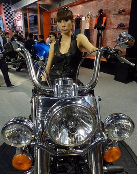 Kábé húszpercenként váltották egymást, finom vonásaikra szelíd fegyelmet erőltetve tűrték, hogy kiguvadt szemű (már amennyire ez Ázsiában lehetséges) férfiak fényképezzék őket egészen közelről, ami inkább pornográfia már, semmint finom erotika. Na de nem is selyemfestő-kiállításon vagyunk, hanem motoroson, és különben is, az vesse rájuk az első villáskulcsot, aki ellen tudna állni egy megelevendett manga-babának.