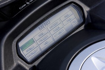 Két műszeregységet is elhelyeztek a látótérben: a felső, fontosabb adatokat (sebesség, fordulatszám, visszajelző lámpák) megjelenítő panel a kormányon kapott helyet, míg a kipörségátló beállításait, a váltó fokozatot az alsó, tankba integrált, színes kijelzőn olvashatjuk le.
