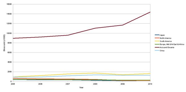 A Honda nyilvánosságra hozta 2010-es eladásainak grafikonját. A helyzet nekik vidám, nekünk viszont egyértelműen elszomorító: az európai piac egy jelentéktelen koszcsík a lap alján.