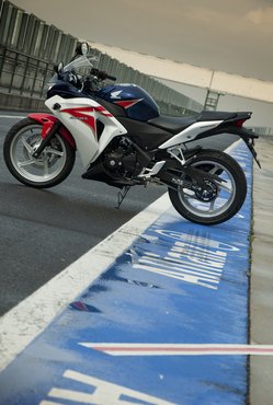 Ha messziről nézzük, lényegesen nagyobbnak hat; erről a trükkösen megtervezett idomok tehetnek. Fekete színben nem adja igazán, de a tradicionális trikolor nagyon jól áll neki. A megtévesztő optika ellenére rövid combok alá is passzol a CBR – fiatalok, nők vagy a praktikumot kereső motorosok is értékelni fogják a 161 kilós össztömeget.