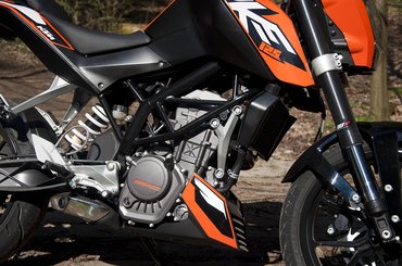 Messziről általában jól mutatnak, az arányokat igyekeznek a felnőtt gépekhez igazítani – nem véletlen, hogy úgy néznek ki, mint ezres nagytestvéreik. Közelebb lépve azonban szemet szúrhat az öntött villahíd, a filléres futómű és a sok B kategóriás műanyag. Legyünk igazságosak, ez egyáltalán nem baj, hisz ettől a kategóriától kevesen várnak csodát. Ezen keveseknek gyártották a KTM új utcai bébijét, a Duke 125-öt.