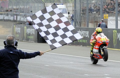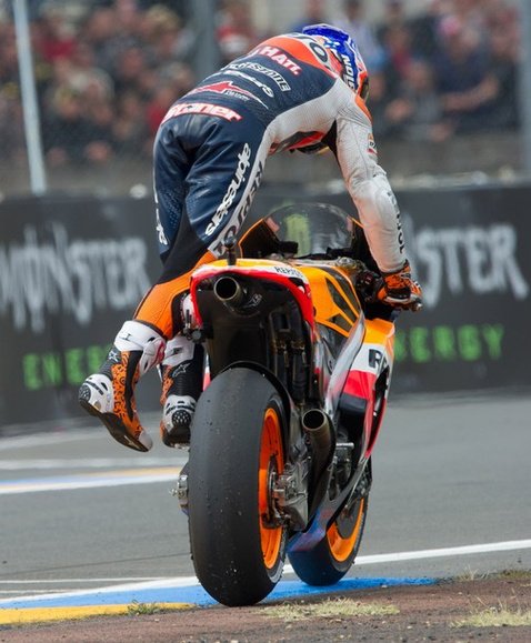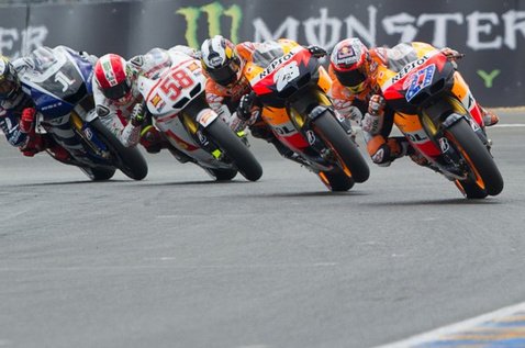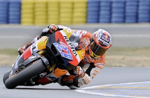 Egy teljesen simának mondható, magányos és nyugodalmas rajt-cél győzelemmel hagyhatja el Franciaországot Casey Stoner. Dovizioso jön be másodiknak, repsol-narancsba borul majd’ az egész dobogó, a HRC vezetés mégis kesernyés szájízzel hagyja el a pástot: négy gyári motorjuk mindenkit leverhetett volna, ha Simoncelli és Pedrosa össze nem akadnak a pályán. Az újra nullázó Sic bosszús, a menedzsereknek felszökött a vérnyomásuk, Dani rossz válla megúszta, a jó meg most lett rossz – eltörött a kulcscsontja. Kettejük hibájának nagy nyertese Valentino Rossi, aki végre begyűjthette első dobogós helyezését új csapatánál.