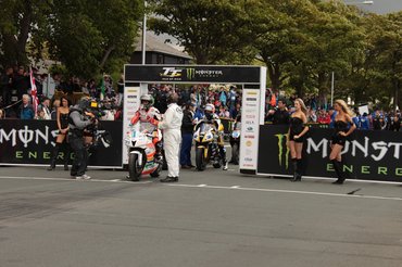 Érdekes volt átélni a futam előtti pillanatokat. A rajt előtti utolsó perceket néhány versenyző együtt töltötte, az instrukciókat adó csapattagokról szinte alig vettek tudomást. A külvilágot teljesen kizárták, a rajongók hoppon maradtak. Guy Martin sztársága itt a szigeten közelít Valentino Rossiéhoz, mindenki őt akarja, mindenki belőle akar egy darabkát. Ő szemmel láthatóan nehezen dolgozza fel a szituációt, nagyon siet, autogramot ezekben a pillanatokban lehetőleg nem ad. A hátralevő időben Bruce Anstey mellett álltam. Vállát összehúzva, hunyorogva, szótlanul a távolba révedt. Az rajt előtti ötperces sípolásra aztán elbattyogott motorjához.