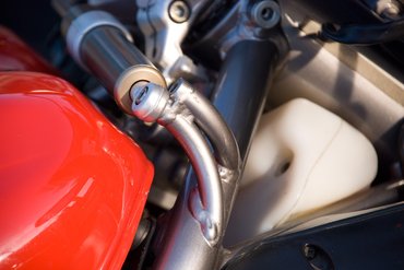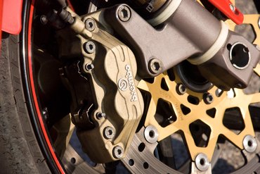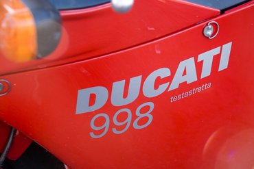 Aha, kezdem is érezni! A 998-as mégiscsak legenda. A teljes neve eleve 998 Testastretta Biposto, vagyis keskenyfejű kétüléses, ami magyarul inkább egy buszokon élő parazitafajnak hangzik, de olaszul jól cseng. A Testastretta motor nagyjából ugyanaz, mint a 996-os elődmodell Desmoquattrója, de a főtengelytől fölfelé átdolgozták. A vezérlés maradt Desmotronic, melynél a szelepeket közvetlenül a vezérműtengely bütykei nyitják és zárják, de nem ez a lényeg. Nem is a 123 ló. Hanem? Hanem ahogy kinéz; ez a nagyvonalúan harmonikus forma, ez a festői idom, mint egy szamurájkard határozott csapásaival faragott óriási trappista sajt. Az arany teleszkópszárak, a fejidomból kinövő nyuszifül-tükrök, a segg alá felhúzott kipufogók, meg a hátsó lámpák, amiket mintha valami NDK utánfutóról gyógyítottak volna bele (valójában ugyanez volt a Cagiva Mitón és a Ducati 916-on). Ez műtárgy, ahogy van.