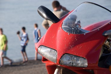 Ez volt fennállásom leghosszabb motorozása. A szentendrei Lukoil kútról indultunk Visegrád felé. Előtte vártam egy kicsit Gergőt (ő egy másik Gergő, de úgy látszik, a gergőség bevonzza a Ducatit), és minden V2-es motorhangra felkaptam a fejem, de amikor meghallottam a 998-ast, már nem kapkodtam: tudni lehetett, hogy ő az. Nem a hangerőből, mert a gyári Termignonik nem különösebben hangosak, de a Ducati olyan dolog, hogy már a puszta hangjának is komoly jelenléte van. És a motor persze gyönyörű. Gergő szerint egyszer már csúszhatott az oldalán, de ez nem látszik, ahogy az se, hogy ő állította helyre drága pénzért a váz eredeti színét.