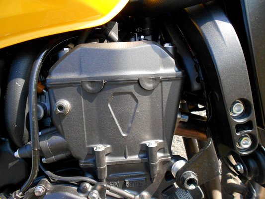 Azért merem kezdő motornak ajánlani, mert bár nincs benne változó szelepvezérlés, nagyon határozottan válik ketté a karaktere. Kb. 8000-es fordulatig csak úgy megy, megyeget. Szó sincs itt 103 lóról, szerintem 5000 körül nem lehet több 30-35 lóerőnél, és ez az a tartomány, ahol normálisan motorozgat az ember. 8000-ig tart a nagy büdös Semmi, 10 ezer táján már motoszkál benne Valami, 12-nél már megy is. Elő nem fordulhat, hogy véletlenül túl nagy gázt húzzunk a kanyarban, annyira lassan kap erőre: nincs az a csukló, amivel átfoghatnánk ekkora tartományt. És persze váltani is kéne a megijedéshez, jó sokat. Ha így vesszük, a CBR 600, ahonnan ez a motor származik, eredeti, nyomatékszegény és teljesítményorientált hangolásában még biztonságosabb kezdőmotor lehet. Szmájli.