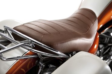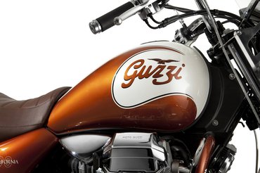 A Moto Guzzi nagyon érzi: a cég kilencvenedik születésnapjára kiadott jubileumi Californa színösszeállítása gyönyörű. A tankra festett régi, harmincas években használt logó és az arany-fehér festés hihetetlenül karakteressé teszi a V2-es motorkerékpárt.