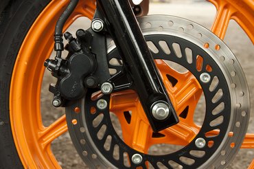A CBR125R legnagyobb erőssége a fék és a futómű, pedig nagy műszaki csodák nincsenek itt sem. Hátulra kapott egy központi, nem állítható rugóstagot, a lengővilla pedig kétkarú, egyszerű négyszögprofil. A fékek is szimplák, hátul 220, elöl 276 mm-es átmérővel. A fék pontos nyomáspontú, igen rendesen fog, kis kézerővel, nem esik nehezére megfogni ezt a csekély tömeget. A tesztmotoron nem volt ABS. A feszes futómű remek, tényleg jól érezni a motort és a tapadást, könnyen lendíthető egyik ívről a másikra és igen meggyőzően kanyarodik. Ennek ellenére még tűrhető a rugózási kényelem, engem meglepett, hogy a rugóútjai hosszabbak, mint a CB500-asé.