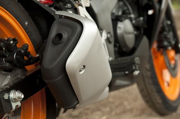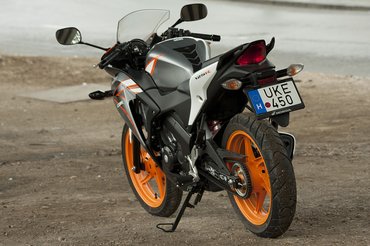 Tudja a fene. Mindenesetre a kis gép kívánatos, ha messziről nézzük, pláne Repsol festéssel. Kapható ugyan sima feketében is, de azt butaság egy ennyire jó formájú motorrá ráfújni – persze ez magánvélemény. A fehér-kék-piros kombóban kifejezetten emlékeztet az új CBR1000-re, ez sem rossz.