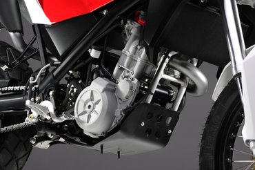 A BMW G szériájában megismert folyadékhűtéses egyhengeresbe egy kicsivel több életet leheltek a Husky mérnökei. Pontos adatokról nincs szó, feltehetőleg ötven-ötvenkét lóerő a blokk teljesítménye.