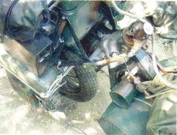 -A sebváltó 1938-as, nem billesített (szerk.: Bill Gates és hasonszőrű társai által gyártott tömegtermék). Teljesen zárt, ujjnyi fogaskerekek vannak benne. A német bakáknak gyártották, bár az olasz belsaglieri katonai alakulatnál már az első világháborúban használtak ilyesmit. Szinte lehetetlen tönkretenni. Bowdenek sincsenek rajta, mert azt gyűlölöm, a könnyebben javítható rudazat híve vagyok.