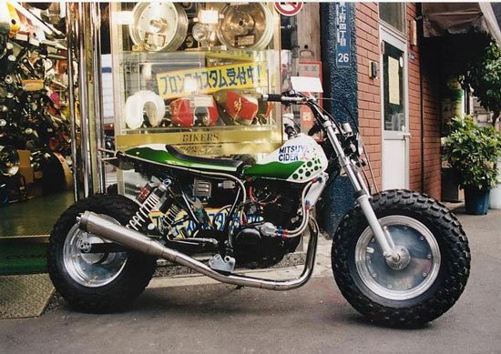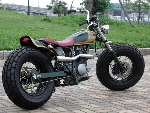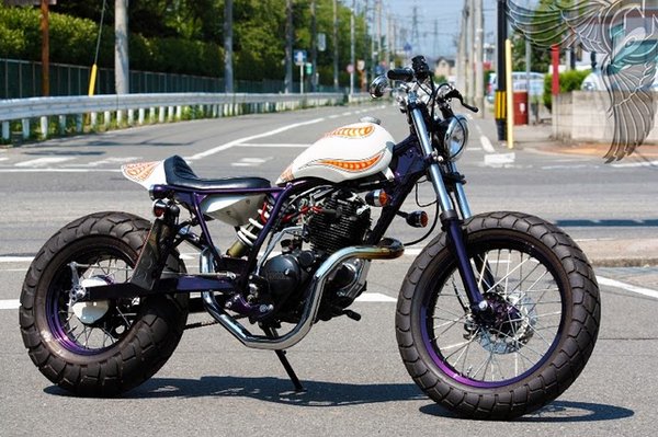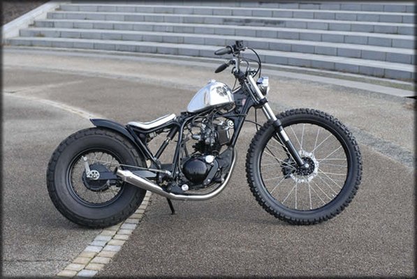 Ezeknek a buci kerekű gépeknek a divatja valóban Japánban a legerősebb, bár a francia Blitz is imádja a stílust. Gyakran Supertrapp, vagy ahhoz hasonló kisméretű lamellás dobot tesznek fel a gyári kályhacső helyett. Ezek hangolhatók, így nem okvetlen orbitálisan hangosak. Ázsiában gyakran a motor alá vezetik el a könyököt, de ha tényleg lemennél az aszfaltról, ez nem ideális. Hagyd meg bátran a gyárit, és keress vagy gyártass egy szemre passzoló dobocskát.