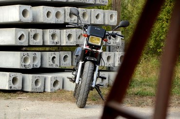 A másodikat egy márkakereskedésben találtam középretek állapotban. A márkakereskedés ténye biztató, az már kevésbé, hogy le se mossák a használt motorokat: retkesen állnak bent a szalonban. Ha én kereskedő lennék, csillivillire vakarnám, az biztos – itt még a metálbordó tank alján kezdődő ragya is szembetűnő volt. Az ár jó volt, de mivel kétszer annyit kértek érte, mint az eredeti elképzelésem, vakaróztam kicsit. A számláló 50 ezer kilométert mutatott és erősen futármotornak nézett ki, pláne ahhoz képest, hogy 2004-es évjárat, bár inkább csak annak hirdették, mert valójában, roppant meglepő módon csak 2001-es.