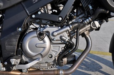 A hatötvenes, V2-es blokk viszont most is nagyon jó. Őse még karburátoros volt, és az első SV650-be szerelték. Aztán befecskendezőt raktak rá, jöttek az újabb SV-k, a V-Strom és a Gladius - tehát a hatötvenes V2-es sokat fejlődött. Duplagyújtású, befecskendezőiben két pillangószelep simítja a gázreakciókat, és teljesíti az EURO3 normát. A kereskedő állítja, kevesebbet is fogyaszt mint régen. Nekem öt liter fölötti átlag jött ki, ami azért nem rekord. Hangja közel sem olyan szép, mint akármelyik Honda Transalpé az elmúlt évtizedekből, de a két, szinte azonos hengerűrtartalmú motor közül valamiért mindig a DL650 kerül majd ki győztesen, ha utas is ül a nyeregben.
