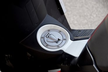 A fura ergonómiának van előnyös oldala is: a kakasülőről kiválóan átlátható a forgalom, és mi is jól látszunk – nem kell attól tartani a Benelli nyergében, hogy nem vesznek észre az autósok. A magas építés másik kellemes mellékhatása, hogy a 12-es kerekek és a vékonyan párnázott ülés között bőven marad hely, így szép nagy sisak-, illetve csomagtartót alakíthattak ki, ahol egy zárt bukó is gond nélkül elfér. Ráadásul tiszta és szagtalan, hiszen a benzintank a lábtartó alatt lakik. Ugyanakkor a két láb között végigfutó gerinc, amelyen a tankolónyílást elhelyezték, elveszi a másik szokásos szállítási lehetőséget, a sík lábtartót, ami a legtöbb robogón rendelkezésünkre állna.