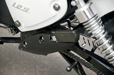 Figyeljék csak azokat a hajlított, dupla tükörszárakat! És a tankba szerelt sebességmérőhöz mit szólnak? Jól van, jól van, tudom, hogy benzinszint-jelző az, mert ez a motor a kormánykiflijén hordja a kilométeróráját, de akkor is... Hohó, és van ott két, 49-es Wescóra méretezett trepni lábtartó gyanánt, az sem utolsó. No meg az indexkapcsolók – mindegyik irányba egy-egy nyomógomb, milyen motoron láttak ilyet? Ugye, érzik, hogy minden finom részlet arra utal: aki a Keeway Superlight 125 Limited Edition nevű, erősen spanyol nemesi hosszúságú nevet hordozó motorkát tervezte, az látott már képet Milwaukee-ben készült cruiserről.