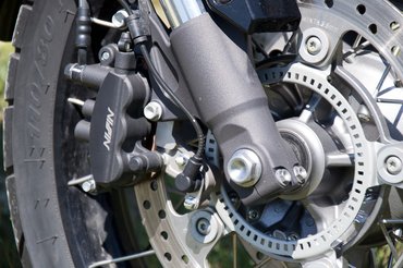 Az eddig kipróbált túraendurók közül a BMW R1200GS fékjeit találtam a legharapósabbnak, Árpád szerint viszont a KTM-é most a legjobb. Ezeken az ABS egy gombnyomással kikapcsolható. A Honda rendszere nem tűnt kiemelkedőnek, viszont ez is jól adagolható, és elég erős is, hogy rövid úton megállítsa a Crosstourert.