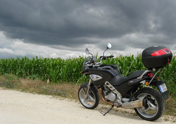 BMW F650CS: "A gép jól dönthető, mármint az én amatőr szintemen, viszont a guminyomásra nagyon kell figyelni, mert puha gumival azonnal úszik. És persze a gumira is: az eredeti Bridgestone jó volt, a jelenlegi Continental Road Attack viszont rémálom, nehezen melegszik, csúszik."