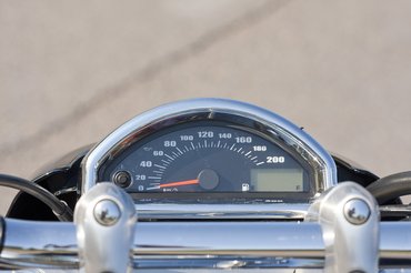 Az ilyen szemétkedéseket leszámítva nagyon lelkesen megy az Intruder, egyesben kb 65-ig, kettesben 95-ig gyorsul, hármasban pedig megfutja a 130-at. Ezt a tempót könnyedén elviseli, bár fölötte már kifogynak a fickóssági készletei, de itt már az embernek sincs nagyon kedve tovább húznia. Érdekes, hogy a fura lámpaidom azért egy picit eltereli a szelet is, de a cirkálás azért kellemesebb. Hogy mást ne mondjak, 130 táján már a menetszél kezdi felemelni a az ember lábfejét, mert cirka 30 fokos állásszöggel kapja meg a légáramot a magasan és elöl lévő lábtartón. Úgyhogy aki szeretné a felhajtóerő fizikáját tanulmányozni, íme a remek lehetőség. Hadd dicsérjem még egy kicsit a váltót, mert messze az átlag felett pontosan működik, nem kell hozzá nagy erő, és rendesen megvan az üres fokozat is.