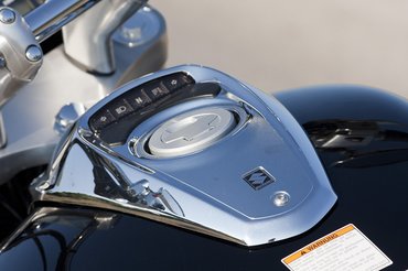 Azonban műanyag és műanyag között nagy a különbség, és pont egy ilyen férfias pózőr motornál illene olyanokat használni, ami nem karcosodik már pusztán attól, hogy ránéznek. A gyújtáskapcsoló köré is került egy műanyag panel, lötyög az egész, és a kulcstartón elhelyezett kis hajlékony mütyüsz, amire a kereskedésben a rendszámát írták rá, egy rendes kört csiszolt, ahogy körbe-körbe fújdogálta a menetszél. A tankon elhelyezett krómozott műanyag rátét is ronda, egyenetlen hézaggal követi a fém ívét. Egyébként ide tettek pár visszajelzőt, hogy az embernek kiessen az elsődleges látómezejéből.