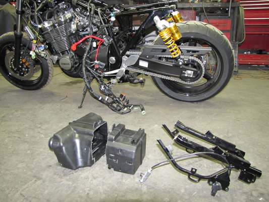 A gyárban akkor szerelik be a légszűrőházat, amikor még csupasz a váz és nincs benne a négyhengeres. Majdnem megőrültem ettől, igaz a normál vevőnek nem kell egyhamar az XJR légszűrőházát kitisztítani a kartergáz dzsuvájátol, az tuti! .”