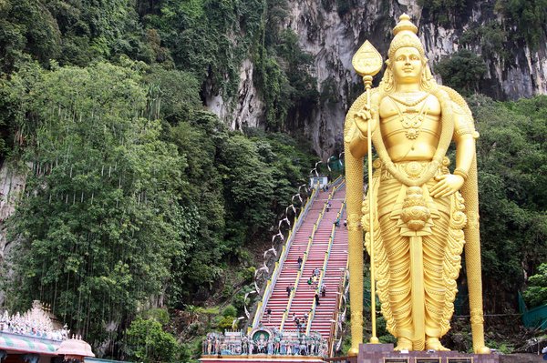 A végtelen kanyargás után Kuala Lumpur felé folytatom utam az autópályán. A fővárostól északra meglátogatom a hindu vallás egyik legpompásabb szentélyét. Batunál 272 lépcső vezet fel a hatalmas cseppkőbarlanghoz, bent Murugan istenségnek állítottak oltárokat. A lépcső tövében 43 méter magas szobrot állítottak 4000 tonna vasbetonból; Thaiföldről hozták az aranyfestéket, amivel lemázolták. Hemzsegnek a turisták, mégis végtelen áhítatot sugall a hely. A szerzetesek éneke hangzik az oltárok és a templomhelységek felől, szülők ide hozzák a csecsemőket áldásért.