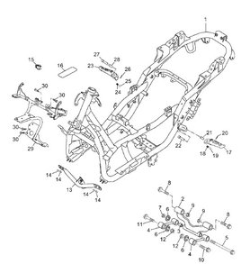 Az egész robogó erősnek tűnő, masszív csővázra van építve, amely a lábtartónál kardánalagútként magaslik, azaz itt nem tudsz elvinni se egy láda almát a trepnin, se Marshall erősítőt, ellenben sportosabbá, komolyabbá teszi a külsőt. A nem csak alul, hanem felül, a burkolat alatt is futó vázcsövek enyhén térhálós megoldásért cserébe komoly szilárdságot adnak: a váz az alapköve a futómű stabilitásának.