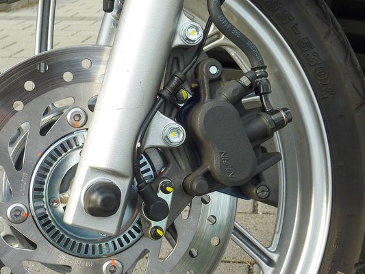 A Honda SH-kat 2005-óta kombinált fékrendszerrel készítik, de eddig hátul dobfék volt. Furcsa fejlemény, hogy a magyar piacon elérhető ABS-es új verzióra nem tették fel a CBS-rendszert, így az egymástól függetlenül lassítja az első és hátsó kereket. Összesen egyszer sikerült egy kicsit megcsúsztatnom az elejét, de akkor már nagyon igyekeztem és rögtön belépett az ABS. A fékrendszer teljesítménye a teszt során egyre javult, ahogy a kezdeti 458 kilométertől közeledtem az ezerig.