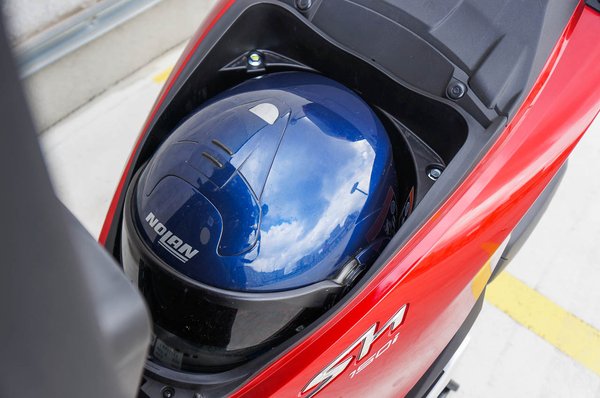 Az új SH egyszerű acélcső vázat és az idomokat a vezető feneke alatt öblösebbre vették, hogy a nagy kerékméret ellenére beférjen a zárt sisak az ülés alá. Saját Nolan N102 sisakom kis erőltetéssel tényleg megtalálta helyét, bár semmi más nem fért be mellé. Nagy dolog ez. A hátsó doboz amúgy alapáras, de nem ez a legérdekesebb, hanem, hogy a százötvenes 1,050 milliós árához jár a blokkolásgátlós fék is. A B125-ös jogosítványhoz megfelelő SH125i-ért egyébként 915 ezret kérnek, és ugyanezeket a felszereléseket adják hozzá. Az árkülönbség érezhető, de a névleges teljesítménybeli eltérés is három lóerő. A százötvenes teljesítménye eléri a tizenöt lőerős választóvonalat. Vagyis ez a változat tényleg csak hengerűrtartalma miatt lóg ki az A1-es jogosítványkategóriából.