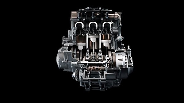 A 11,5:1 kompressziójú háromhengeres furat löket aránya 78 x 59,1 mm. A vezérlés DOHC rendszerű, hengerenként négy szelep dolgozik, amelyek mérete szívóoldalon 31, a kipufogónál 25 milliméter. A főtengely elékelése 120 fok, vagyis a gyújtás 0º, 240º és 480º fokonként követi egymást – biztos, hogy izgalmas hangja lesz az új Yamahának, tekintettel arra, hogy eddig minden MT-hez volt extraként megvásárolható Akrapovic dob.