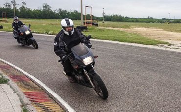 Egy fontos dolog azonban hiányzott az alapszintű tréningből: a kanyarodás. A nap végén ugyan megmutatták a különféle stílusokat – az egyenes angolt, a motort maga alá döntő franciát, a versenyeken használt kiülőst és egy, ez utóbbira emlékeztető, de térdlógatás-mentes negyediket (van neki szép német neve, de ha megfeszítenek, sem jut eszembe) – de csak hogy lássunk ilyet is. Az ok nagyon egyszerű. A széles reptéri beton, amely a többi gyakorlathoz tökéletes, erre a célra nem jó. Itt mindenki olyan íven kanyarodik, amilyenen csak szeretne, hisz bármi elfér. Ezért van, hogy a kanyarodás oktatására külön félnapos tanfolyamot szerveznek egy alkalmasabb helyszínen, a Kakucs Ringen.
