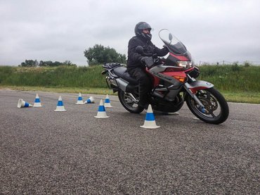 Aki olvasta az előzményeket, az emlékezhet, hogy az áprilisi tréning végén arra kértek, ismételjem meg az alapszintű képzést, mielőtt továbblépnék. Májusban több szerencsém volt az időjárással: száraz, napsütéses, de még nem kánikulai napot fogtam ki. Talán a feladat ismerete tette, vagy az a tény, hogy közben annyit ültem motorra, robogóra, amennyit csak lehetett, netán ahogy Mackó, az instruktor mondta, jót tett az új sisak, de ezúttal sokkal jobban ment. A legnagyobb gondot a tartás okozta: a feladatok nagy része csak úgy megy jól, ha kézzel egyáltalán nem támasztjuk magunkat a kormányon, helyette combbal szorítjuk a tankot, és a törzs izomzatával tartjuk a felső testünket. Különösen igaz ez a vészfékezésre – esetemben 120 kiló teljes tehetetlensége próbált leszakítani a motorról – de sikerült megtalálni a megfelelő testtartást, így kiderült, hogy nem is olyan lehetetlen a dolog, mint gondoltam. Így néhány nap múlva megkaptam az újabb értékelő levelet, amelyben az állt: nyugodtan lépj tovább akár az intenzív, akár a haladó szintre.