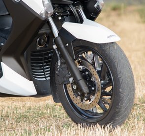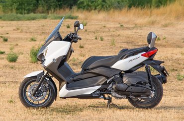 Ha a leggyakoribb útvonalunk elfogadhatóan sima, boldogok leszünk az Xmax 110 milliméteres rugóútjaival, mert az Xmax kanyarodik, mint a sátán, bírja a kanyarban fékezést, és nagy tempónál az 1565 milliméteres tengelytávnak köszönhetően stabil. Érdekes még az is, ha menet közben megrángatjuk a kormányt. Egy gyengébb vázzal megvert robogó ilyenkor elbizonytalanodik, miként nyomvályús úton is, az Xmax-on viszont a ráncigálás abbahagyásának századmásodpercében megszűnik a bizonytalanság. Mintha egy vaskos, másfél méteres fatörzset próbálnánk meghajlítani, ami azért nagy eredmény, mert az óriásrobogók gyártásában, ezzel a kontúrral mindig nehéz az erős váz létrehozása.