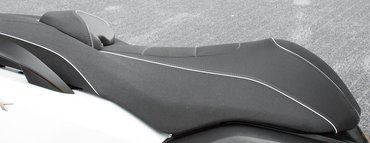 Kerékméretben egyébként ez a kedvencem, elöl 15, hátul 13 collos felnik, ezekkel már a futómű megugorja az elviselhetőség alsó határát, de megőrzi azt a vidor élénkségét, ami megkülönbözteti a jóval tohonyább (és persze kényelmesebb) nagykerekű robogóktól. Nem csak a futómű kemény persze, hanem a nyereg is, ami ráadásul nem az alapáras, hanem már egy drágábbik kiadás. Az Xmax hasonlóan adja a nyeregpuhaságot, mint a Triumph a Thunderbirdnél, de itt a drága nyereg is elég kemény, és erősen ingerel, hogy tűzőgéppel rábarkácsoljak mondjuk egy memóriahabos kispárnát. A másik bajom a nyereggel, hogy van az a kis búb a közepén, ami azt gátolja meg, hogy nagyobb gáznál hátracsússzunk. Sajnos azt is meggátolja, hogy az ember kicsit hátrébb üljön, ha mondjuk egy hosszabb úton nyújtott lábbal terpeszkedne.