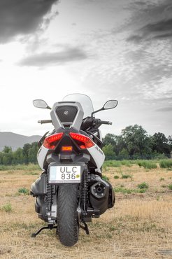 Nem lehetek egy reprezentatív fogyasztó, mert nekem jobban tetszene a Majesty kényelme; az Xmaxról minduntalan az jut eszembe, mennyire kicsi piac vagyunk, és hogy a nagy, fizetőképes országok, ahová az ilyesmit specifikálják, mint mondjuk Németország, hozzánk képest mennyire jó úthálózattal rendelkeznek. A magyar forgalmazó az állítható hátsó futóművet jó érzékkel a leglágyabb állásba rakta, de így is az van, hogy mondjuk a Szentendrei úton nem fáj, a Hungárián ellenben nagyon. Akik ezt a futóművet megtervezték, talán csak képen láttak olyan aszfaltgyűrődéseket, amik csak nálunk vannak, meg mondjuk Kambodzsában.
